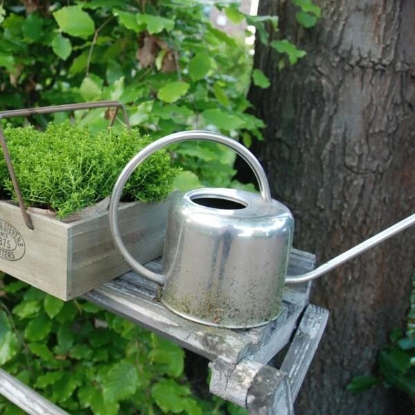 Stijlvolle roestvrijstalen bloemengieter. Moderne design gieter van inox als ideale gieter voor de kamerplanten.
