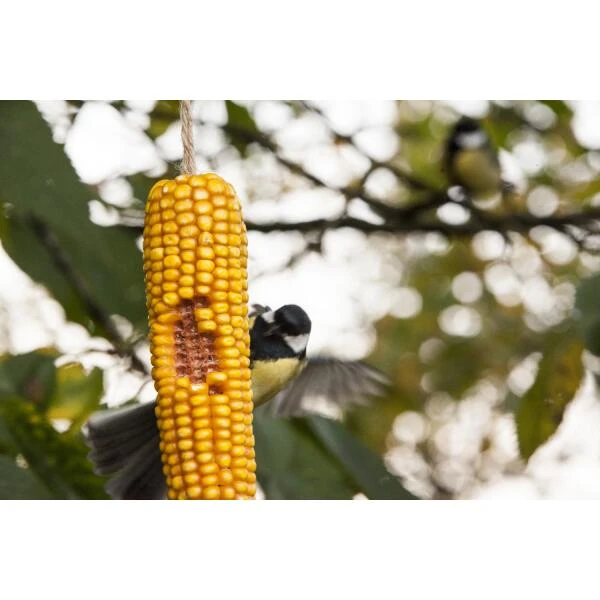 Deze voedzame maïskolven zijn rijk aan koolhydraten, voedingsvezels en bevatten vitamin A en B. Hierdoor zorgen ze voor extra energie die de vogels in de winter broodnodig hebben om hun lichaam op temperatuur te houden.