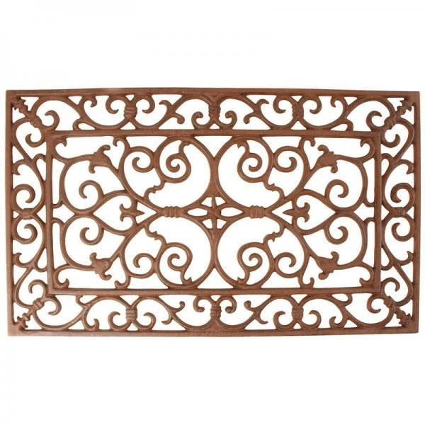 Gietijzeren klassieke rechthoekige deurmat met sierlijke krullen.