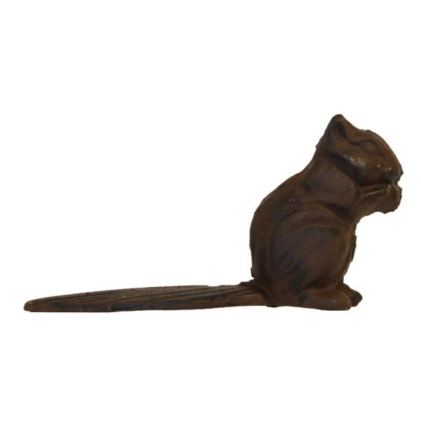 Met deze rustieke deurstopper in de vorm van een eekhoorn heb je nooit meer dichtslaande deuren. Door de schuin toelopende vorm klemt de wig zich vast onder de deur.