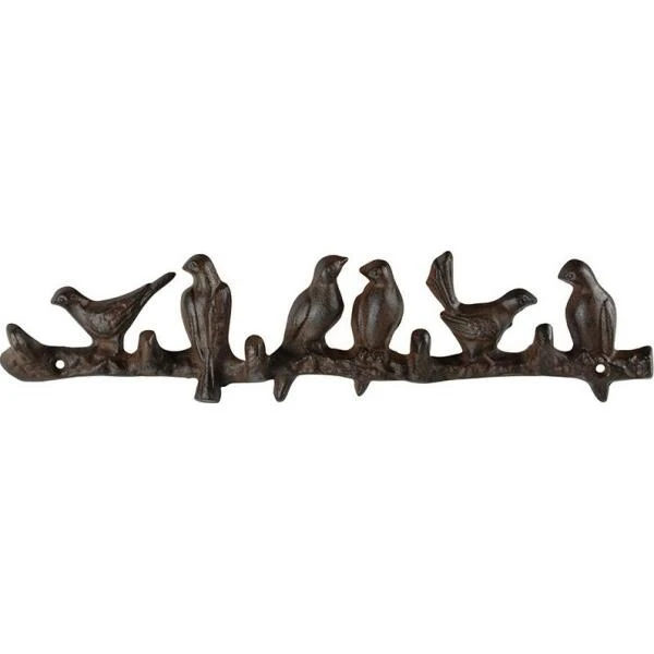 Zes vogels hebben al fluitend plaats genomen op een tak en kijken om zich heen. Deze leuke en originele kapstok is voorzien van 5 haken waaraan je kledij of tuingereedschap kan ophangen. De kapstok is niet alleen functioneel maar ook heel decoratief.