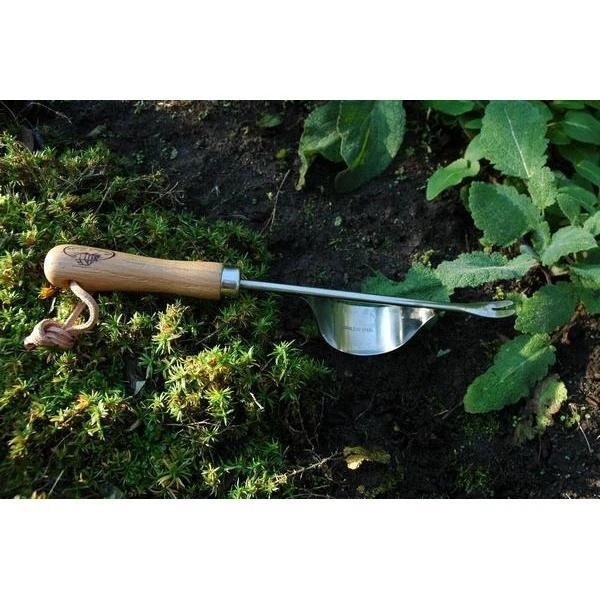 De penwortelsteker is gemaakt van hoogwaardig roestvrij staal met een essenhouten handvat voorzien van een ophanglus om na het gebruik netjes te kunnen opbergen.