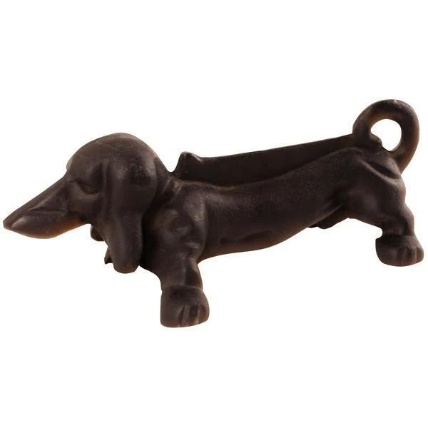 Mooie gietijzeren schoenschraper in de vorm van een teckel, een zeer geliefde hond.