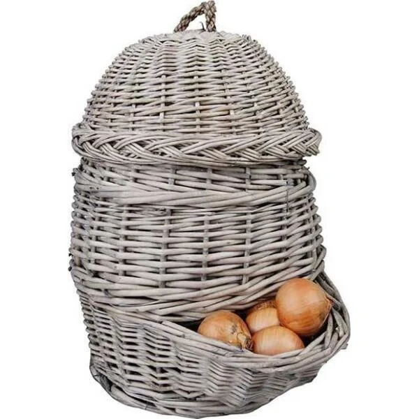 Mooie traditionele met wilgentenen gevlochten uienmand.
